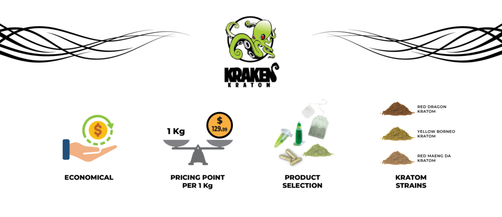 Prices span from $15 to $100, making Kraken Kratom the go-to brand for both novices and experts.