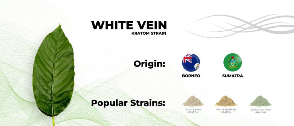 - Popular Strains: White Thai Kratom, White Borneo Kratom, and White Horned Kratom.