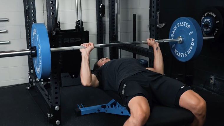 Jake Bench Pressing with the Again Faster Pursuit Olympic Barbell