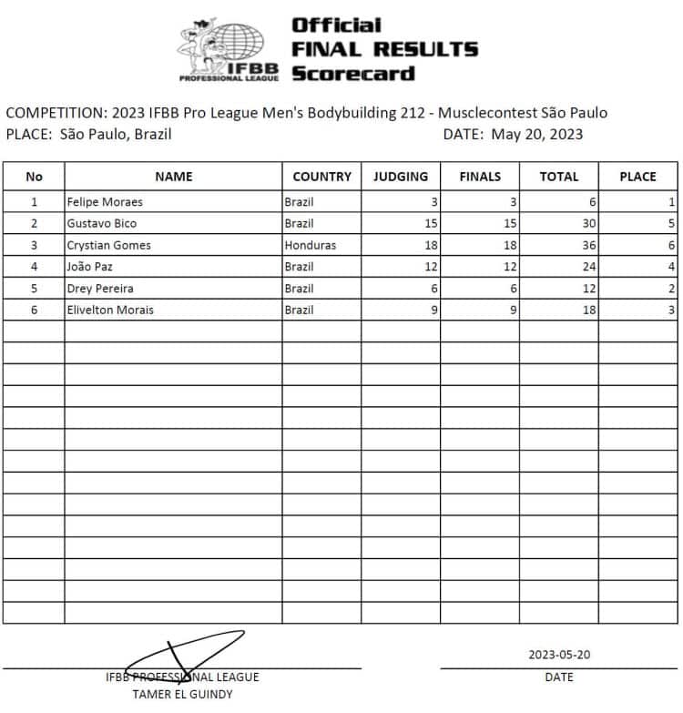 2023 Musclecontest Sao Paulo Scorecard