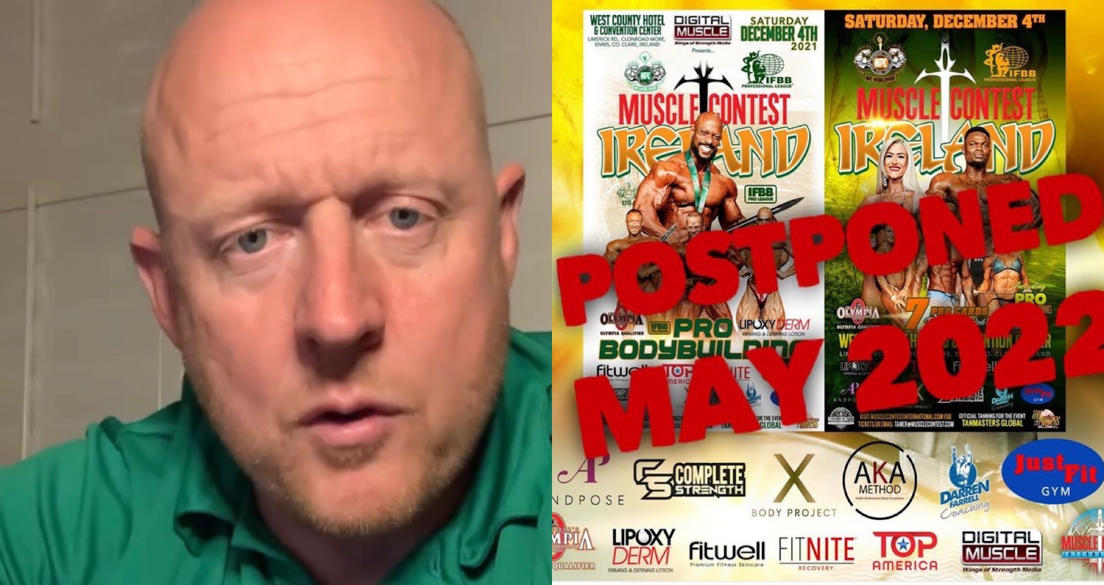 Bodybuilding shows in Ireland will be rescheduled due to COVID restrictions.