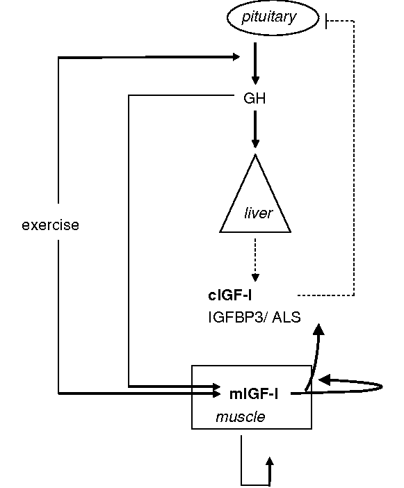 Topped out stimulation of autocrine IGF-1 in skeletal muscle can be achieved with fairly low dosages of exogenous GH, and administering a higher dose above and beyond that may just be a waste.